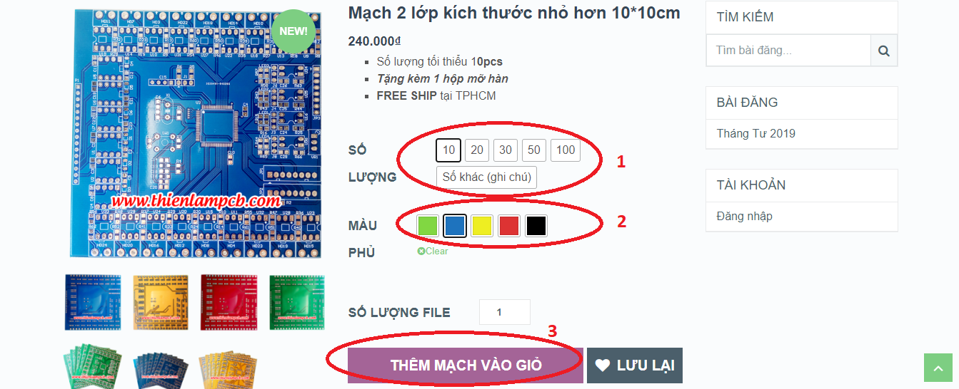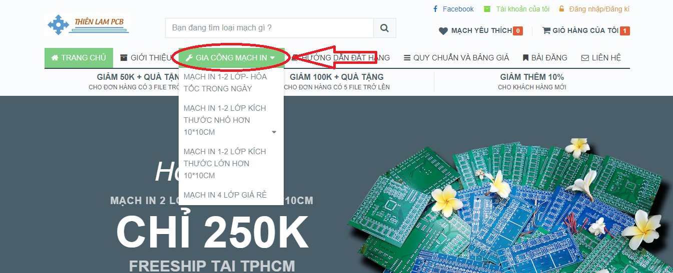 Bước 1: Quý khách vào mục GIA CÔNG MẠCH IN chọn loại mạch và kích thước mạch chúng ta cần gia công.